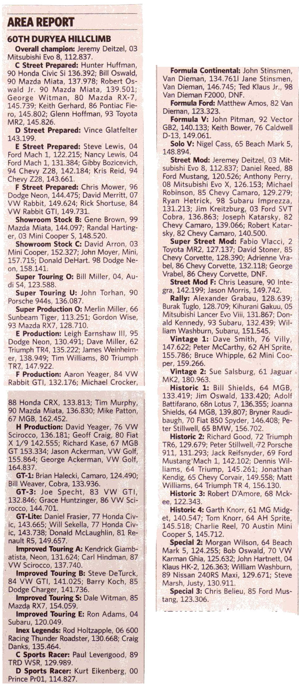 2010 Duryea Hillclimb Results - Posted on Sunday, August 22, 2010